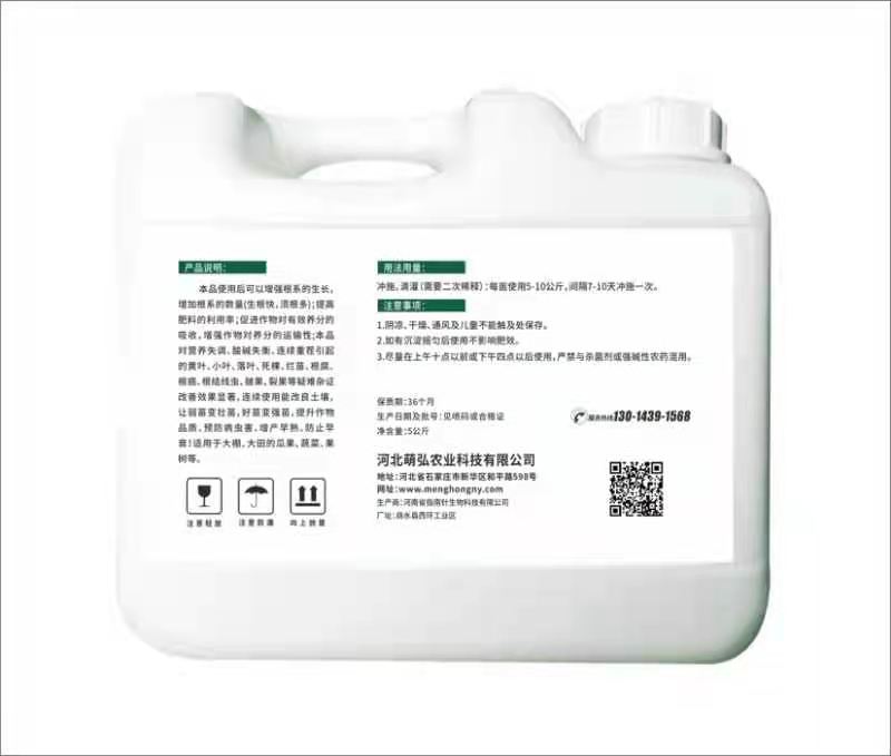 河北萌弘農業科技有限公司是一家集研發、銷售、生產服務為一體推廣高新科技為主的綜合性企業,目前主要從事高端液肥,葉面肥,沖施肥的研發生產和銷售。企業專注于作物增產的營養方案開發,秉承讓作物營養科學規范之道,為農業豐產助力。
